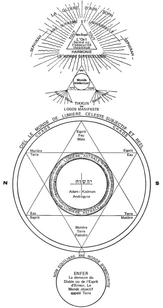 Il renferme le Nom Ineffable. C’est Aïn-Soph, le sans limites, l’Infini, dont le nom n’est connu que des initiés, et ne pouvait être prononcé à haute voix, sous peine de mort. Pas plus que Para-Brahma, Aïn-Soph ne peut créer, car il est dans la même condition de non-être que celui-ci ; il est ןיא [Ain] non existant tant qu’il se trouve dans son état latent ou passif, dans Olam (le temps illimité et infini) ; comme tel, il n’est pas le Créateur de l’Univers visible ; il n’est pas non plus Aur la lumière, il deviendra cette dernière lorsque la période de création l’aura obligé à répandre la Force au-dedans de lui, suivant la Loi dont il est l’incorporation et l’essence. « Celui qui apprend à connaitre la ח »נ (674c), la Mercaba et le lahgash (langage secret ou incantation (675)) apprendra le secret des secrets. » |